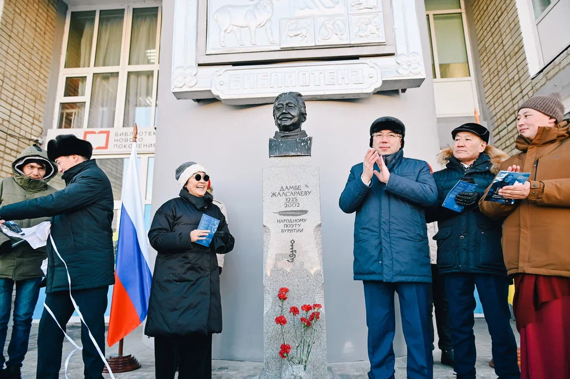 Открытие бюста народного поэта Бурятии, автора текста государственного гимна республики Дамбы Жалсараева состоялось в селе Хоринск 1 декабря. Бюст установлен у центральной межпоселенческой библиотеки, носящей имя поэта. Открыли бюст глава Бурятии Алексей Цыденов и дочь поэта Рада Жалсараева, сообщает Восток-Телеинформ со ссылкой на пресс-службу правительства РБ.