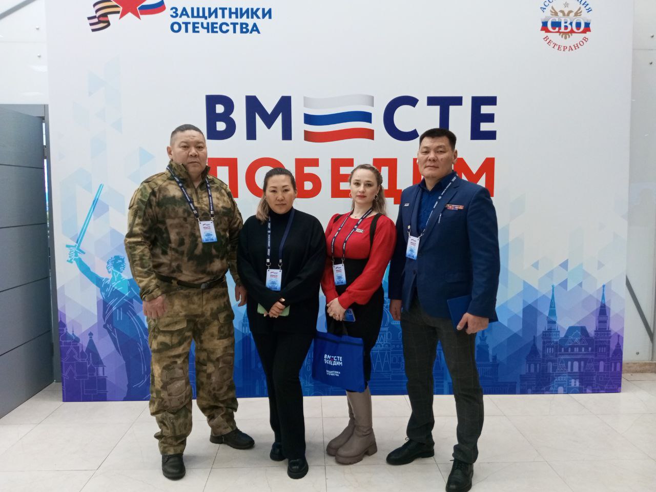Ветераны СВО из Бурятии приняли участие во всероссийском форуме «Вместе победим». Форум проходил с 14 по 17 января в Конгрессно-выставочном центре «Патриот» в Москве. Бурятию представляли ветераны СВО Баир Моисеев и Сокто Раднагуруев, жены погибших Героев Екатерина Касаткина и Мария Семенчук, сообщает правительство РБ.