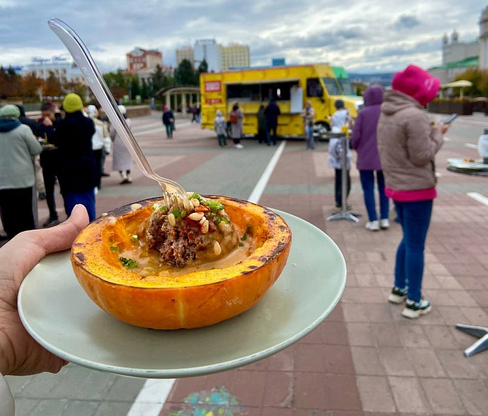 Кулинарный поединок состоялся 29 сентября на площади Советов. На суд жителей вынесли два авторских блюда «Солнце Улан-Удэ», в состав которого входит маринованная конина, тыква, кедровый орех и нежный сливочный соус с сагаан-дали и «Кочевник на колёсах», бефстроганов из говядины с клюквой и брусникой, под соусом из мёда с живицей и местных разнотравий.