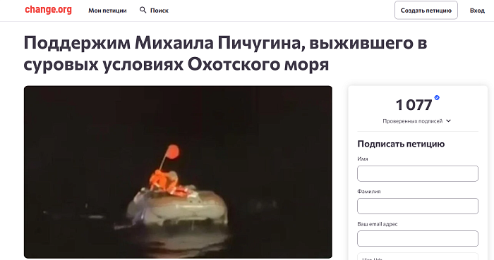 Михаил Пичугин оказался под следствием после гибели его брата и племянника во время дрейфа в Охотском море, который длился с 9 августа по 14 октября 2024 года. В петиции говорится о том, что Михаил, дрейфовавший в море в течение 67 дней, пережил глубокий психологический шок из-за утраты своих родных, которые скончались на его глазах от истощения. Несмотря на все испытания, он вернулся домой и похоронил их по христианским традициям. Однако вместо поддержки и понимания столкнулся с обвинениями и следственными действиями.