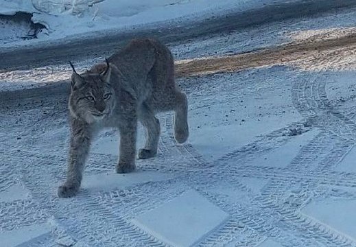 Рысь встретили жители в п. Заиграево в Бурятии. Она пришла на мусорную свалку и пыталась приблизиться к людям в вагончике, но ее спугнули.
