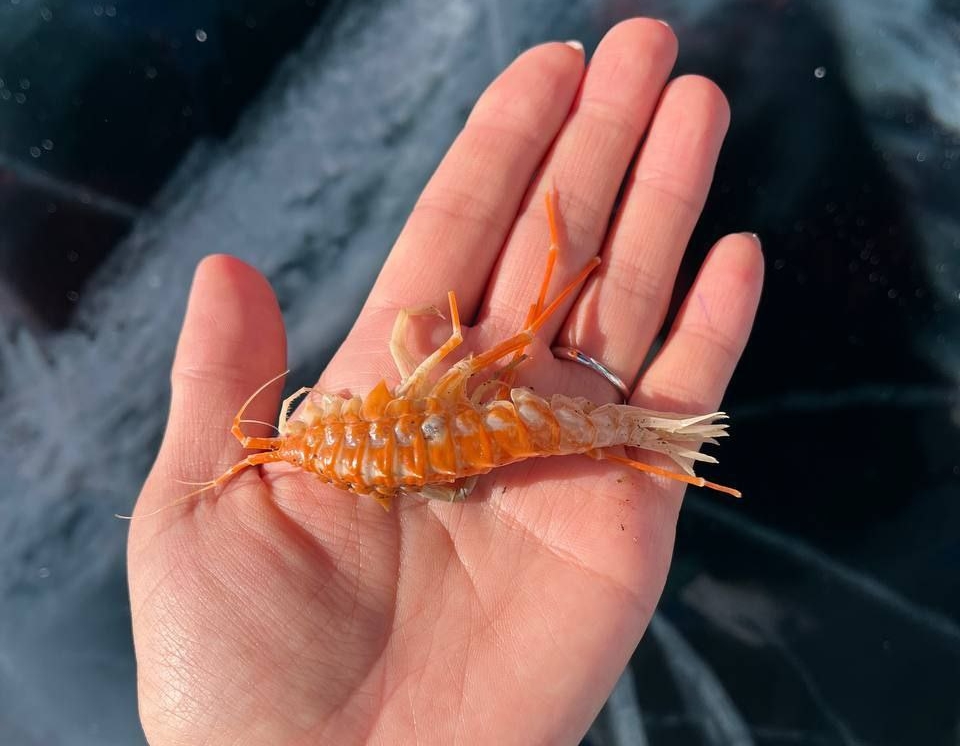 Байкальскую креветку запечатлели туристы. Гид Сэсэг Дашинимаева привезла группу туристов, и им посчастливилось увидеть эндемик озера — акантогаммаруса, которого называют байкальской креветкой.