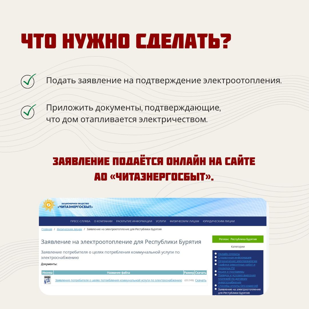 Заявление на официальное признание электроотопления можно скачать здесь. А подробности - в карточках.