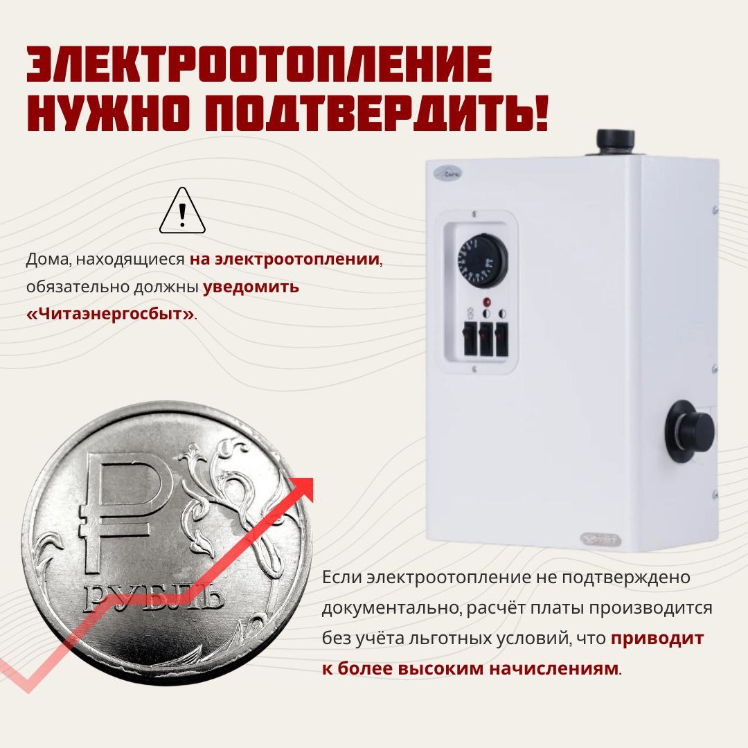 Жителей Улан-Удэ с электроотоплением просят выйти из тени. Если граждане отапливают дом с помощью электрического котла, им необходимо официально уведомить об этом АО «Читаэнергосбыт», а не только передавать туда показания счетчика. Это даст вам право на иной коэффициент при расчете платы за электроэнергию, что снизит расходы.