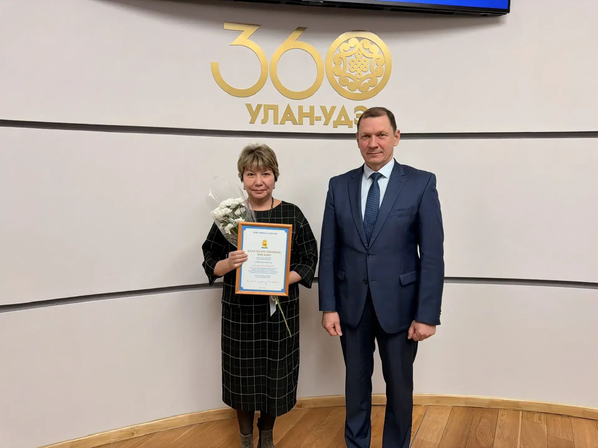 В знак признательности за поддержку командование 135 отдельного мотострелкового батальона передало мэру Улан-Удэ флаг своего батальона от лица военнослужащих.