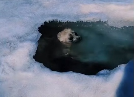 В сети появилось видео милой встречи человека с нерпенком. Турист гулял по льду озера и случайно заметил в трещине малыша. Белый и пушистый застеснялся такого внимания и спрятался под водой.