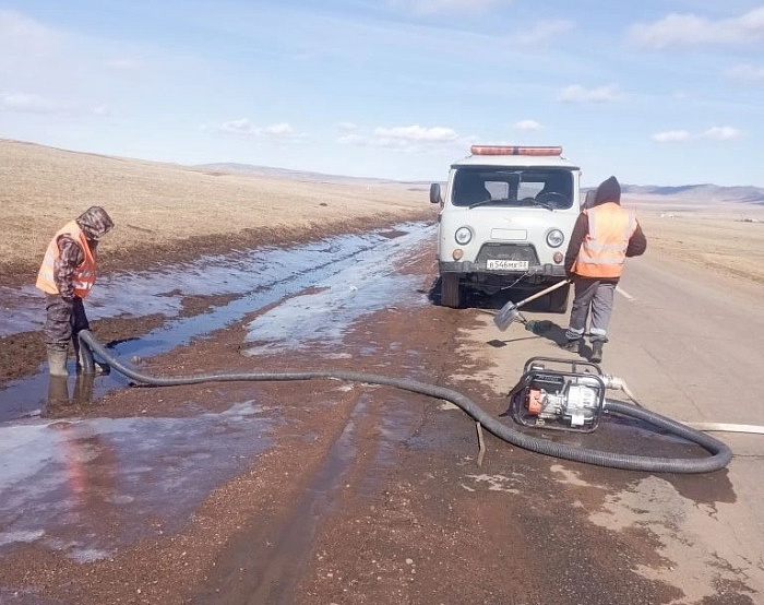 На автодороге Улан-Удэ — Заиграево — Кижинга — Хоринск выполнена очистка проезжей части от наносного грунта на 22, 23 и 29 км, отвод воды, очистка водопропускной трубы и устройство земляного вала на 99, 119 и 127 км в Заиграевском районе. В Кижингинском районе проведена планировка дорожного полотна на 196–208 км и на 224–232 км, также выполнена очистка автопавильонов, тротуаров и бордюрных камней от наносного грунта, уборка мусора на 190–196 км, очистка и вывозка снега с обочин на 196 км.
