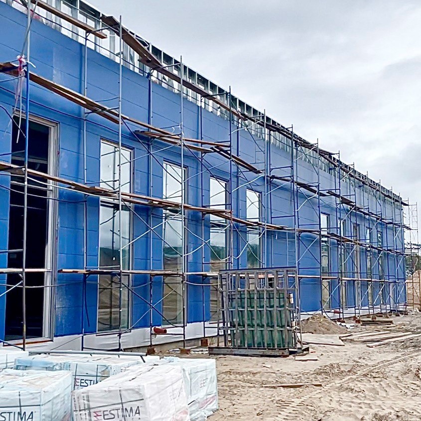 Сейчас в здании завершают устройство наружных сетей водоснабжения, водоотведения, теплоснабжения, утепление кровли, монтаж фасадного керамогранита. Продолжается монтаж внутренних электросетей, вентиляционных систем. Начались внутренние отделочные работы. Осталось выполнить монтаж алюминиевых композитных панелей фасада.