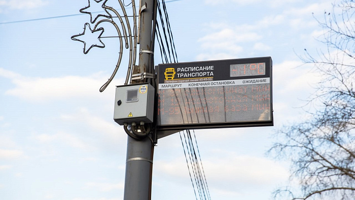 Система также просчитывает прогнозируемое время прибытия различных маршрутов транспорта на каждую остановку. Все эти данные в реальном времени показываются на электронных табло. Электронные табло закупили на средства, сэкономленные на торгах по реализации проекта внедрения Интеллектуальной транспортной системы. Монтажом табло займется ПАО «Ростелеком».