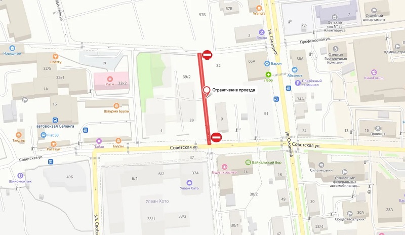 С 20 апреля движение транспорта на улице Шмидта ограничат в Улан-Удэ. Участок от улицы Профсоюзная до улицы Советская закроют для проезда в связи с проведением строительных работ по возведению многоквартирных домов.