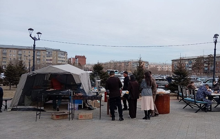 Шашлыками угощали сегодня гостей стратегического форума «Бурятия сегодня. Бурятия завтра!» в Улан-Удэ. Шашлыки приготовили прямо у крыльца физкультурно-спортивного комплекса в центре города.