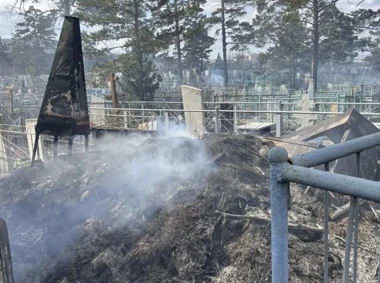 На месте работали 9 человек, 2 единицы техники МЧС России и две маневренные группы. Площадь пожара составила 500 квадратных метров. Захоронения огонь не повредил.