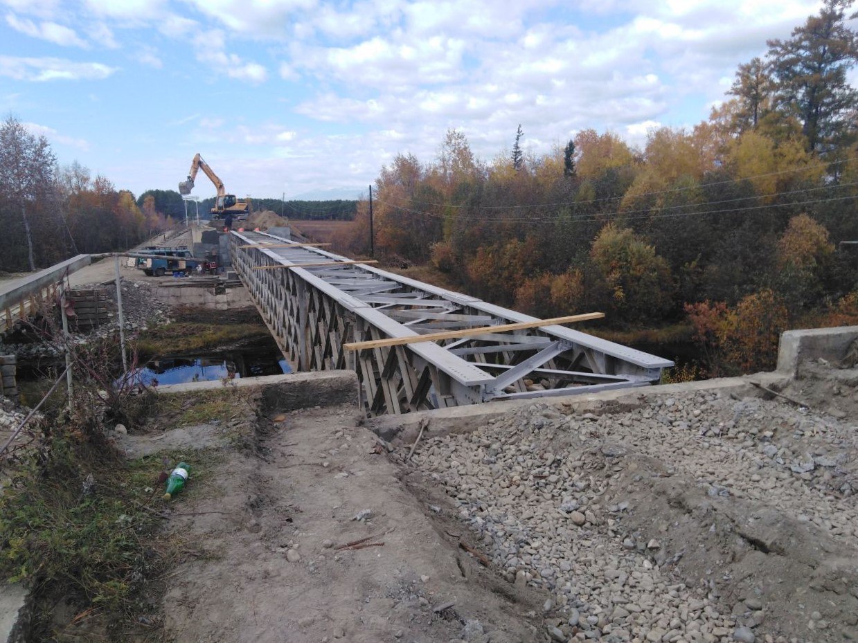 Так, в период с июня по октябрь подрядчик возвел временный мост на объездной дороге, устроил временные подъезды, демонтировал деревянные пролетные строения на самом объекте.