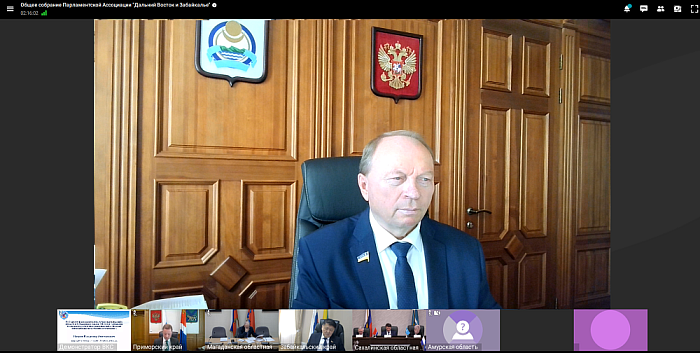 Председатель Народного Хурала Республики Бурятия Владимир Павлов по видео-конференц-связи принял участие в Общем собрании Парламентской Ассоциации «Дальний Восток и Забайкалье». Мероприятие собрало руководителей законодательных органов одиннадцати регионов для обсуждения актуальных вопросов социально-экономического развития и совершенствования регионального и федерального законодательства.