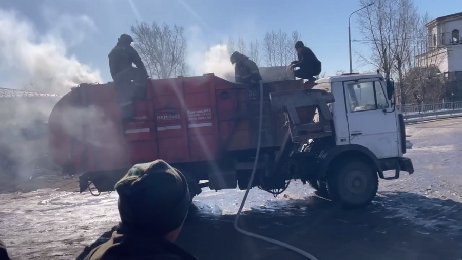 Горячая зола стала причиной возгорания мусоровоза в Кяхтинском районе Бурятии. Мусор загорелся прямо в бункере спецтехники после погрузки контейнеров в центре города.