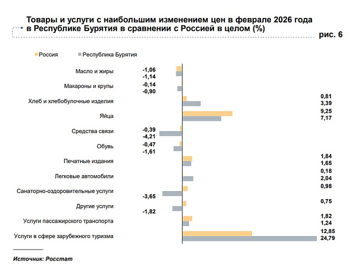 Одним из заметных трендов стало снижение цен на средства связи. Это связано с активными акциями и распродажами смартфонов, проводимыми региональными торговыми сетями. Также в Бурятии подешевели макароны и крупы, что объясняется повышенными запасами у ретейлеров, которые стали активнее снижать цены на эти продукты питания.
