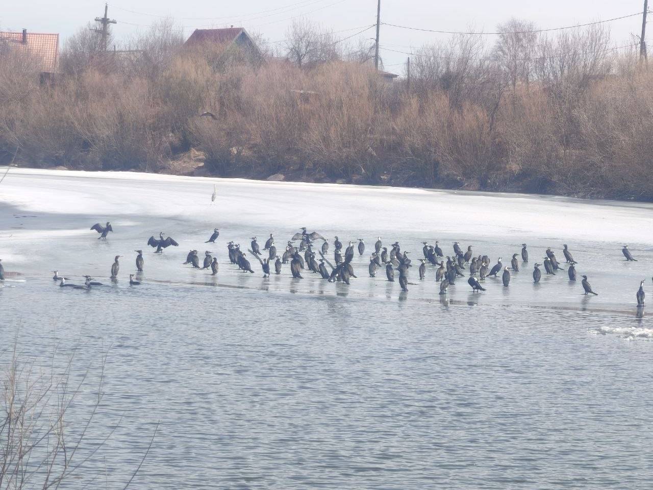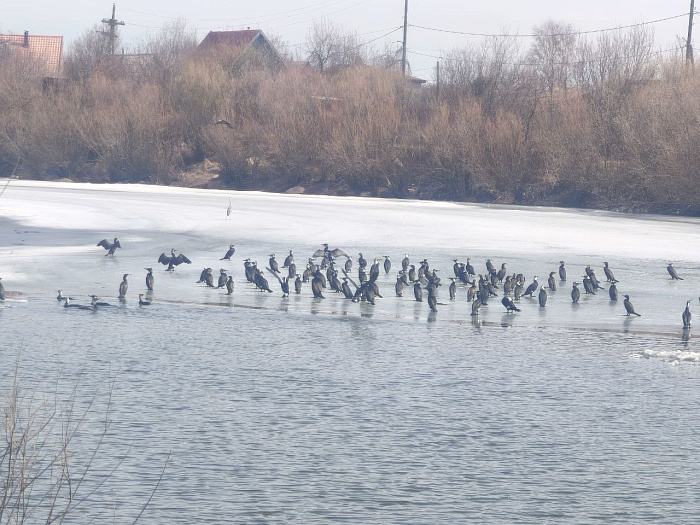 Бакланы захватили реку в Улан-Удэ. Вот таким фото поделились с нами подписчики. Стая большого черного баклана прилетела на Селенгу и десантом высадилась на льдины.