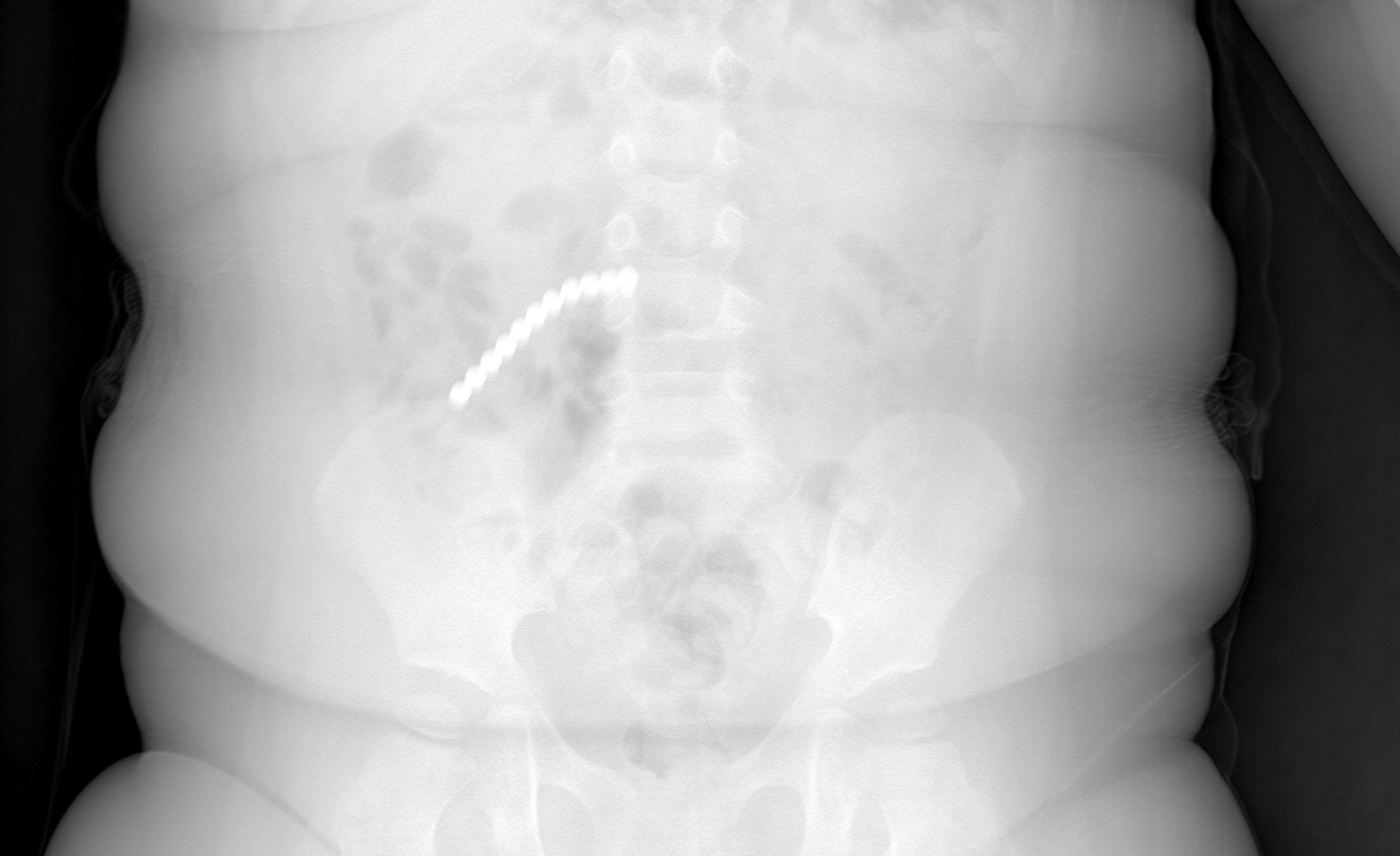 Ребенок поступил в Приемно-диагностическое отделение ДРКБ с симптомами рвоты и ухудшением состояния. Рентгенография сразу выявила наличие множества инородных тел в пищеварительном тракте — 20 магнитных шариков.