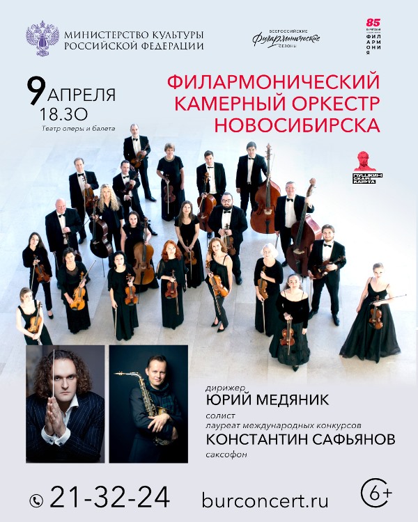 Для всех любителей джаза и классики, необычное сочетание камерного оркестра и саксофона — уже 9 апреля на концерте Филармонического камерного оркестра Новосибирска и известного саксофониста Константина Сафьянова (6+). Дирижёр — обладатель золотых медалей международных конкурсов Юрий Медяник, сообщает пресс-служба филармонии.