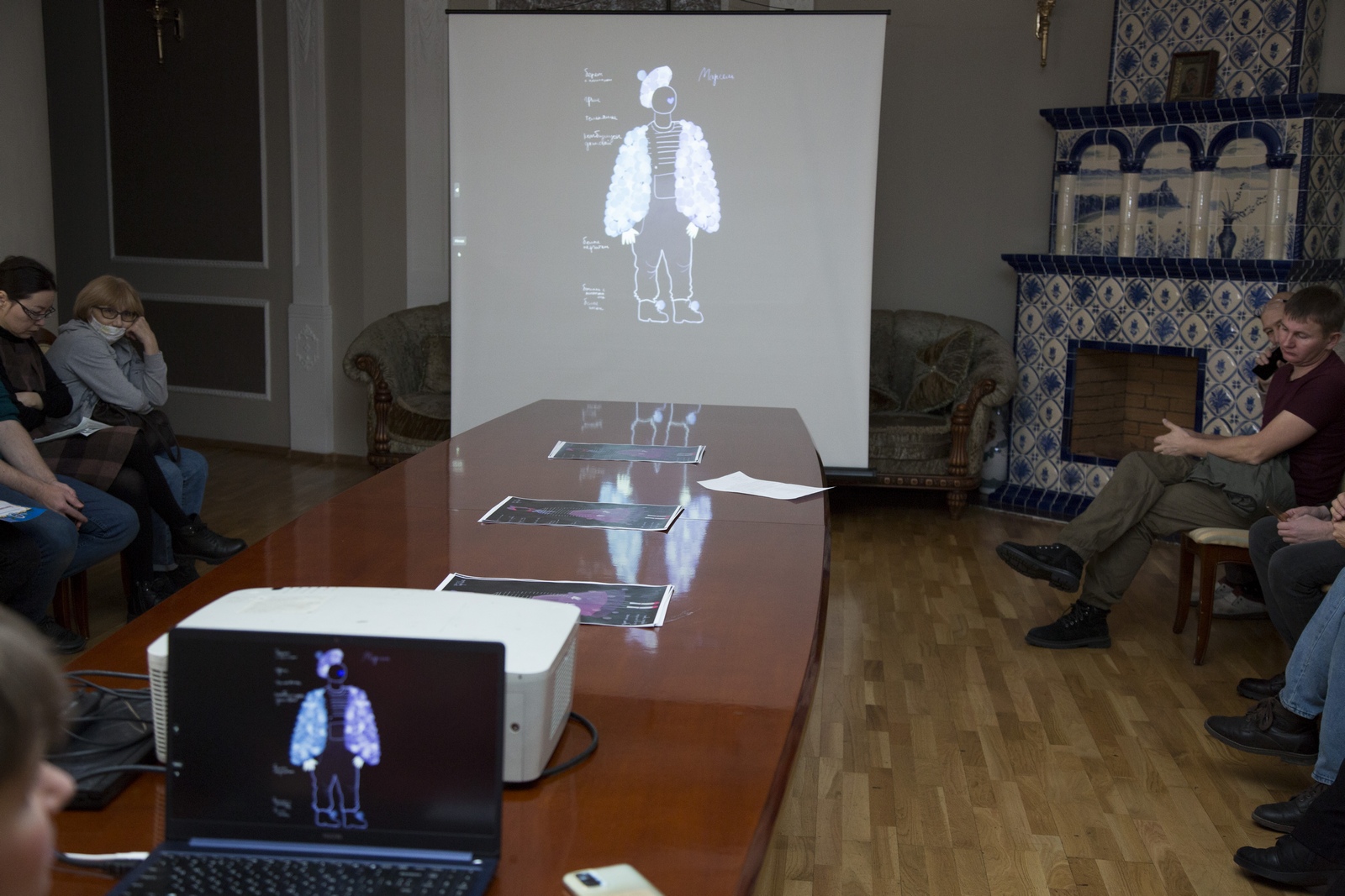 В театре прошел техсовет, на котором мастерам цехов был представлен проект спектакля и эскизы его главных персонажей – Облачка, двух человечков – Мима и Марсели, петушка Цыпы, сторожевой утки Ути и барашка Барашули.