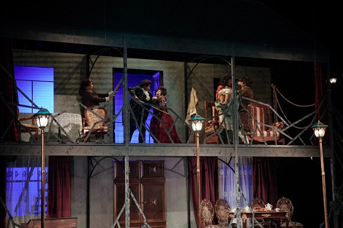 - Мы долго обсуждали с художником-постановщиком, как лучше это реализовать. Я предложил идею, что мы подглядываем за тем, что происходит в доме. Стен там нет, поскольку Простакова, на мой взгляд, не вела бы себя вульгарно при посторонних. И мы действительно подглядываем за происходящим, — рассказал Цырен Батоцыренов.