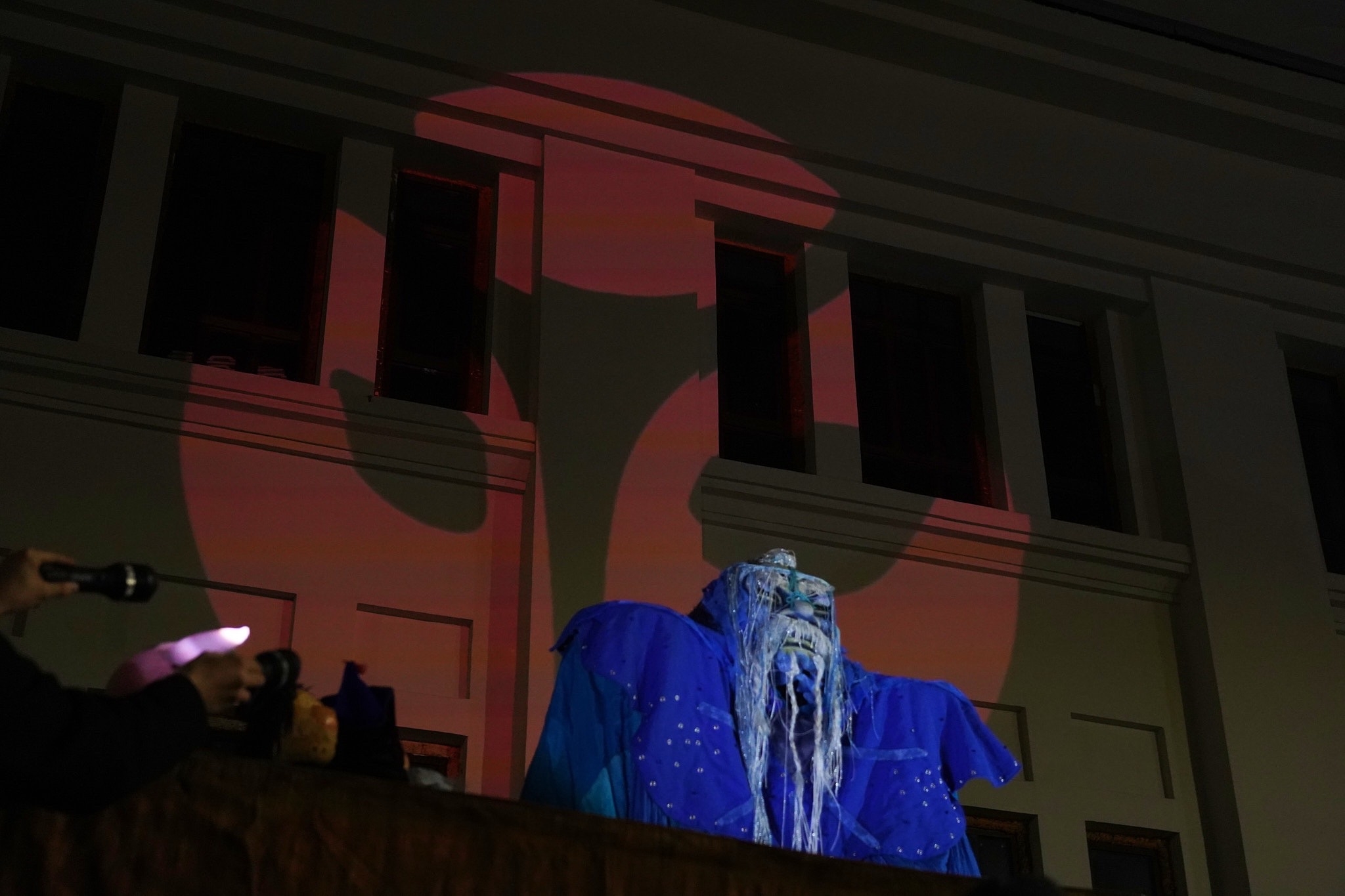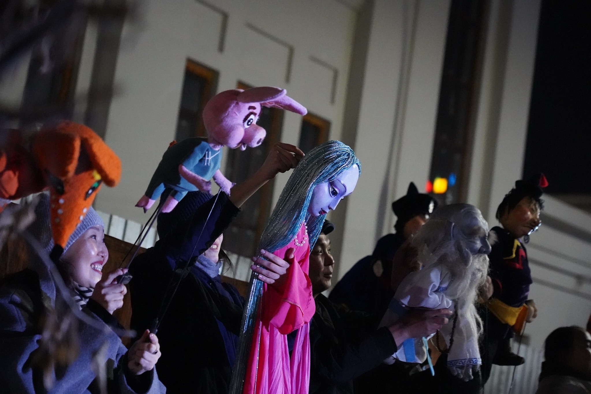 С помощью видеопроекции на стене появлялись анимированные образы кукол, дополненные световыми эффектами и музыкальным сопровождением.