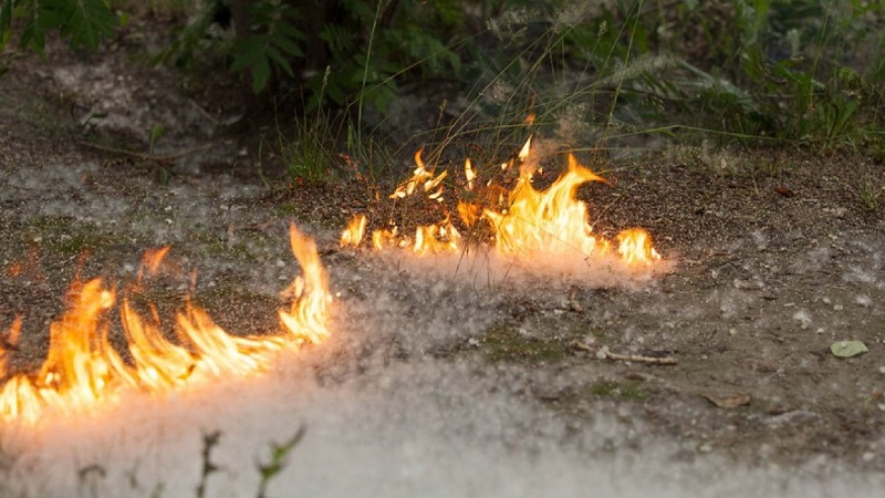 В сухую и жаркую погоду, которая установилась сейчас на территории республики, пух скапливается вдоль дорог, на тротуарах, забивается в щели строений и очень легко воспламеняется. Причиной могут стать непотушенные окурки, спички, детская шалость и нередко возгорания пуха приводят к крупным пожарам.