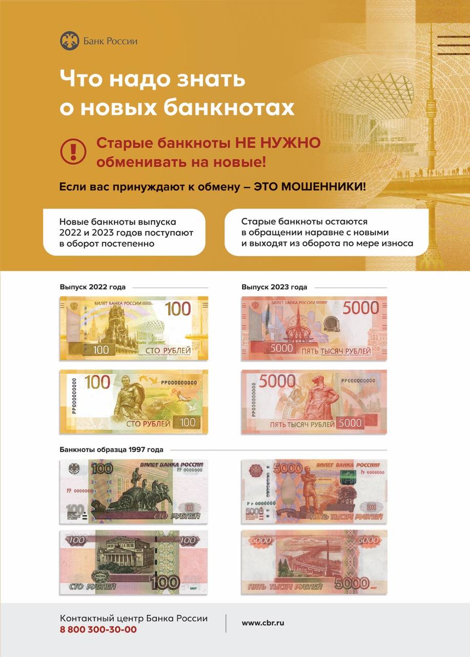 На самом деле, обновленные банкноты - это 100 и 5000 рублей -поступают в оборот постепенно. Старые банкноты не нужно специально обменивать на новые. И те, и другие банкноты будут находиться в обращении одновременно.