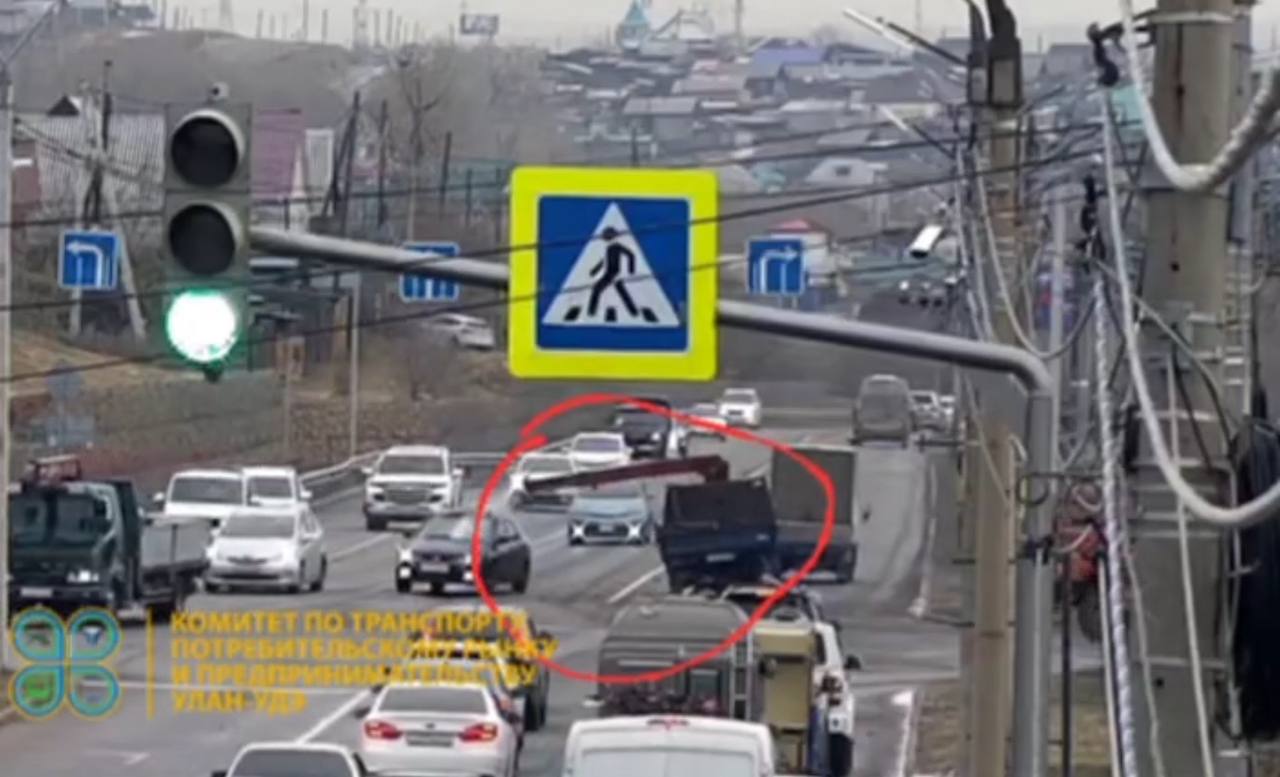 Стрела крана слетела с машины и пробила лобовое стекло в Улан-Удэ. На видео комитета по транспорту попал момент ДТП на улице Ботаническая.