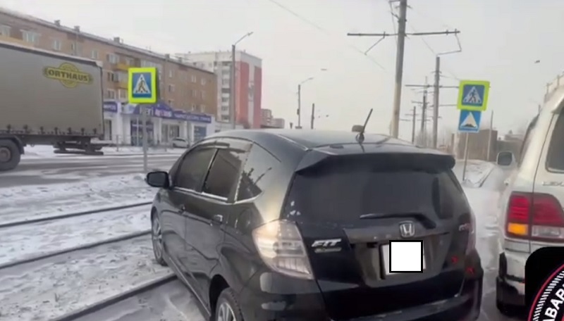 На Ключевской машина выскочила на трамвайные пути и заблокировала всем дорогу. В направлении улицы Лебедева водитель Хонды попытался уйти от столкновения влево.