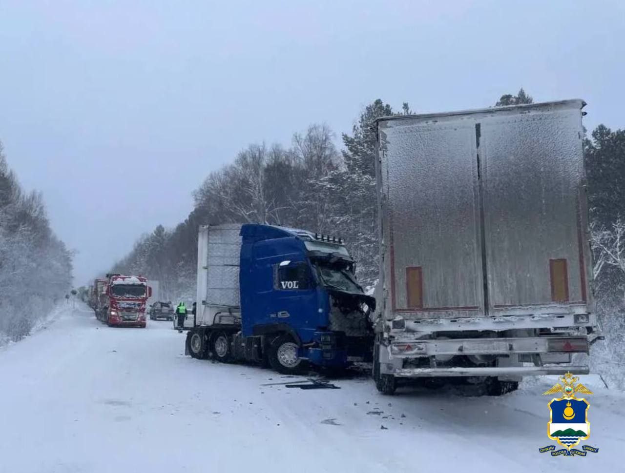 Обе машины двигались в неблагоприятных погодных условиях, после аварии фура съехала в кювет. В результате ДТП пострадавших нет, сообщает полиция Бурятии.