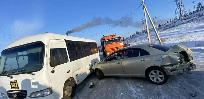 ДТП с маршрутным автобусом произошло в районе мкрн Силикатный в Нижнем Саянтуе. По сообщению аваркома Батыра Артыкова, там легковой автомобиль «Тойота Авенсис» выехал на полосу встречного движения и там на скользкой дороге не справился с управлением.