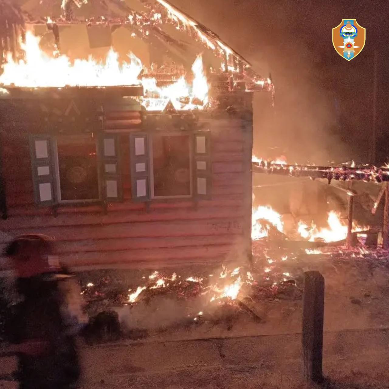 В результате бревенчатый дом и пристроенная веранда выгорели изнутри полностью. Также огонь повредил крышу летней кухни и гаража. Предварительная причина пожара- неосторожное обращение с огнем.