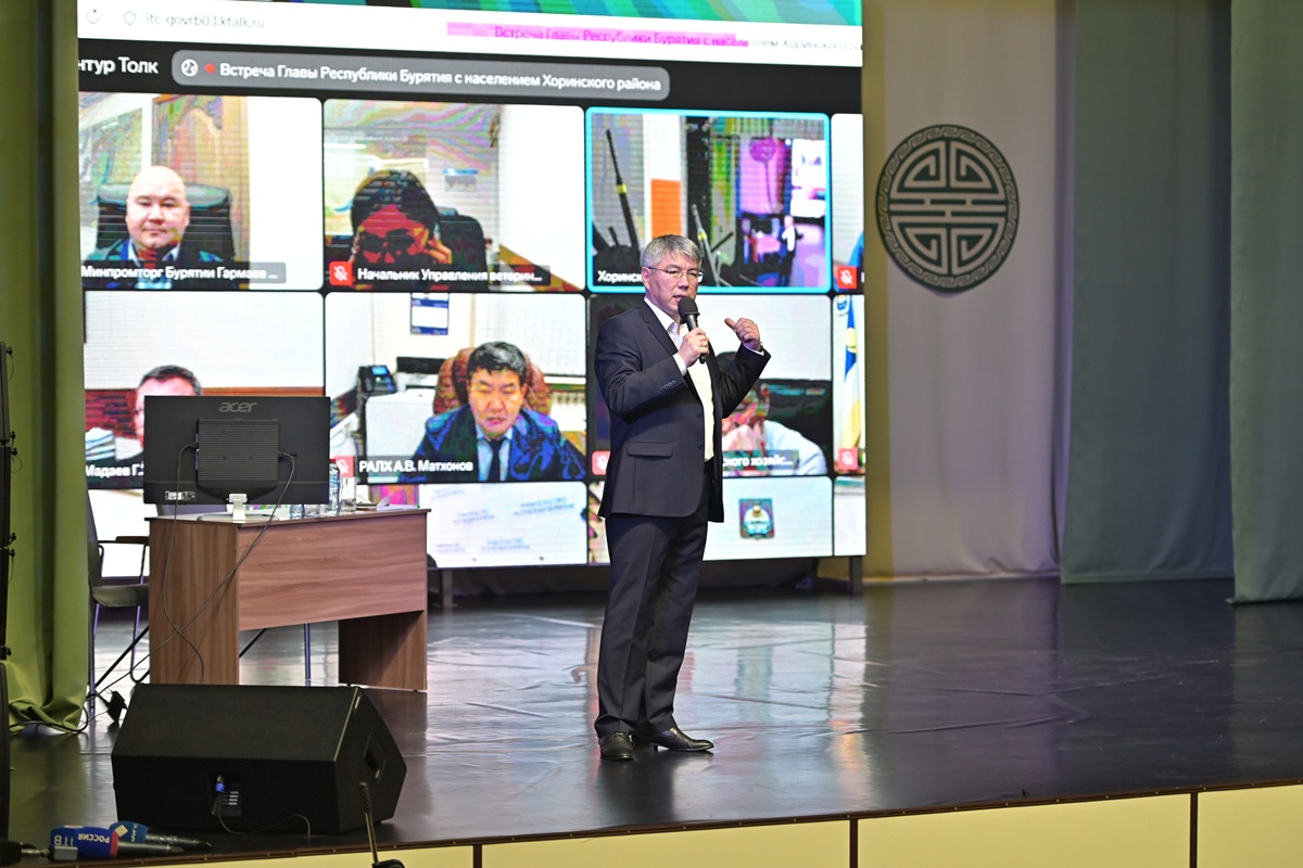 На встрече с жителями Хоринского района обсуждались вопросы строительства спортивного комплекса, благоустройства дорог и закупки техники для их содержания, а также ремонта моста у села Верхние Тальцы. По всем поднятым вопросам были даны разъяснения, а некоторые из них взяты в работу. В частности, будет инициирована работа по учреждению медали для матерей участников специальной военной операции по аналогии с существующей медалью для отцов — «Отец солдата».