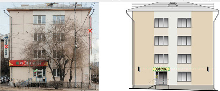 Наибольшая часть замечаний коснулось фасада здания, а также построенными рекламными конструкциями.