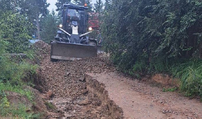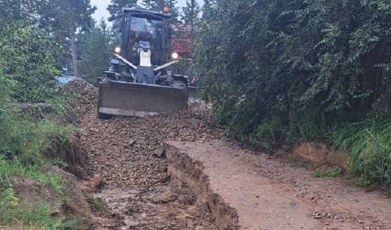 Из-за осадков размыло некоторые участки дорог в Октябрьском районе. Днем техника работала в микрорайоне Светлый, в работах задействовано 14 единиц техники. Здесь грейдировали дорогу.