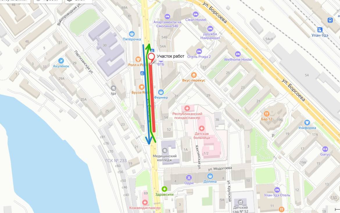 Напомним, что ранее в Улан-Удэ перекрывали еще один участок дороги на Смолина. Участок улицы возле бизнес-центра Greenwich в Улан-Удэ временно закрывали с 4 августа для реконструкции инженерных коммуникаций.