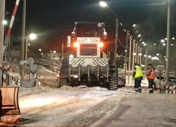 В Железнодорожном районе грейдер произвел очистку площади Комсомольской и улиц Дзержинского, Ломоносова и Жуковского.