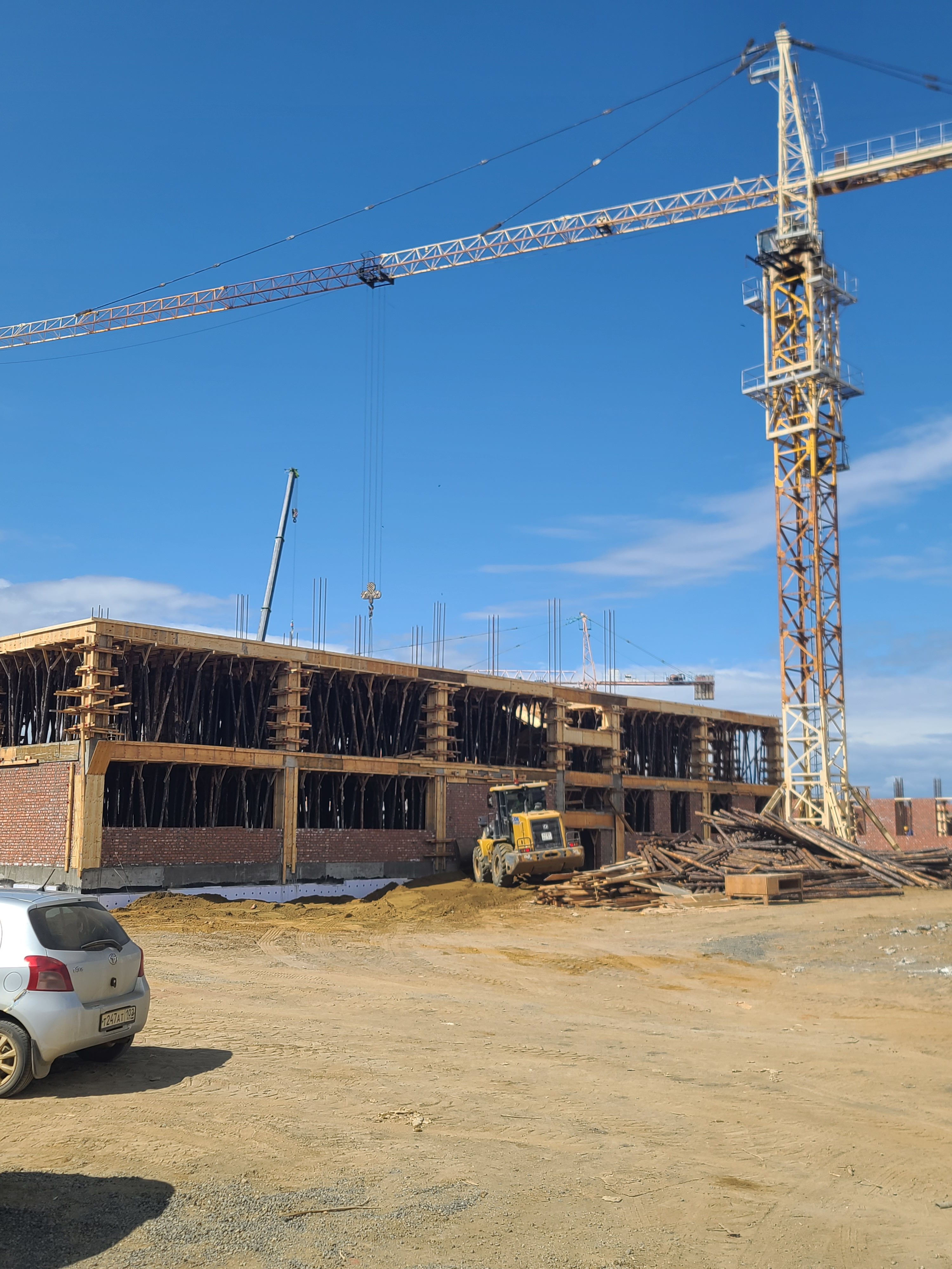На сегодняшний день работы активно продолжаются на нескольких блоках. Завершается монтаж стен в блоке «Е», где также строятся перекрытия для последующей заливки бетона. В блоке «А» начаты работы по устройству кровли. Параллельно запланирована прокладка инженерных сетей, включая отопление, водопровод и канализацию.