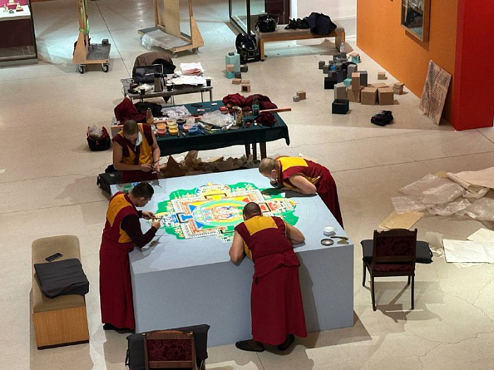Вход на открытие тоже строго по приглашениям, но выставка будет работать в течение трёх месяцев (0+). Специально для выставки ламы дацана Калачакры возводят из разноцветного песка мандалу Бодхисаттвы милосердия и сострадания Авалокитешвары.