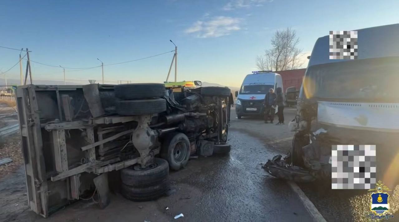Грузовик Nissan перевернулся после столкновения с автобусом на трассе Р-258 в Бурятии, пятеро человек пострадали, сообщает полиция Бурятии.