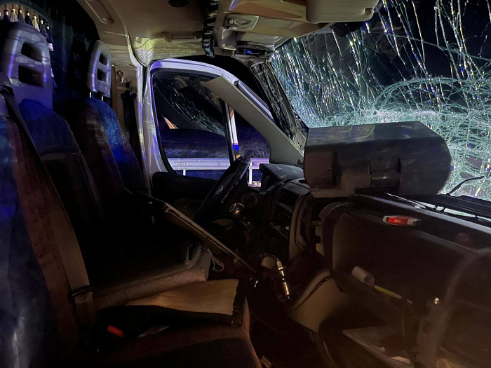 По предварительным данным, автомобиль марки "Газон Некст" столкнулся с внезапно появившейся на дороге коровой. Вследствие столкновения, следующим по той же трассе рейсом автобусом "Фиат Дукато" было совершено вторичное столкновение с грузовиком. В результате аварии два пассажира, находившиеся в автобусе, получили травмы и были доставлены в медицинское учреждение.